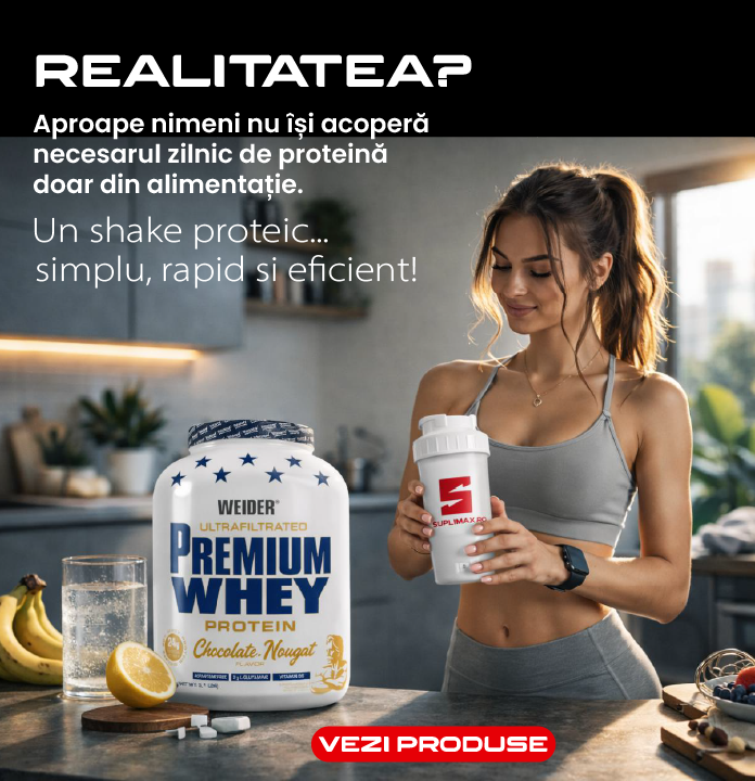La Suplimax.ro găsești suplimente premium pentru fitness și stil de viață activ: proteine, BCAA, creatină, aminoacizi, Omega 3 și vitamine esențiale. Oferim branduri de top recunoscute pentru calitate, ideale pentru creșterea masei musculare, arderea grăsimilor, recuperare rapidă și susținerea energiei la fiecare antrenament.