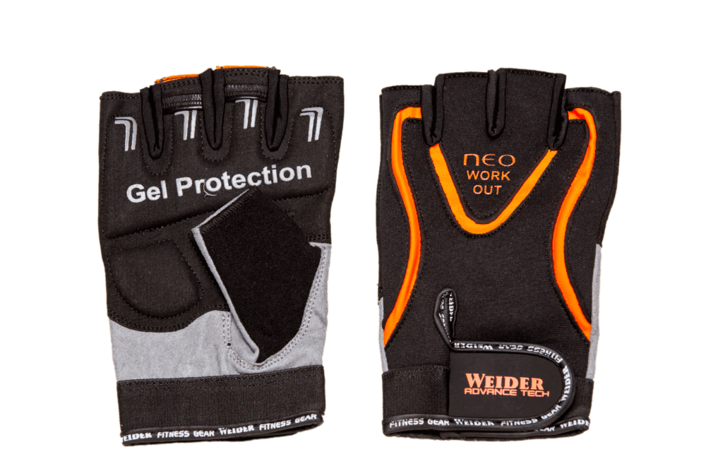 Manusi Weider de culoare neagra si portocalie.