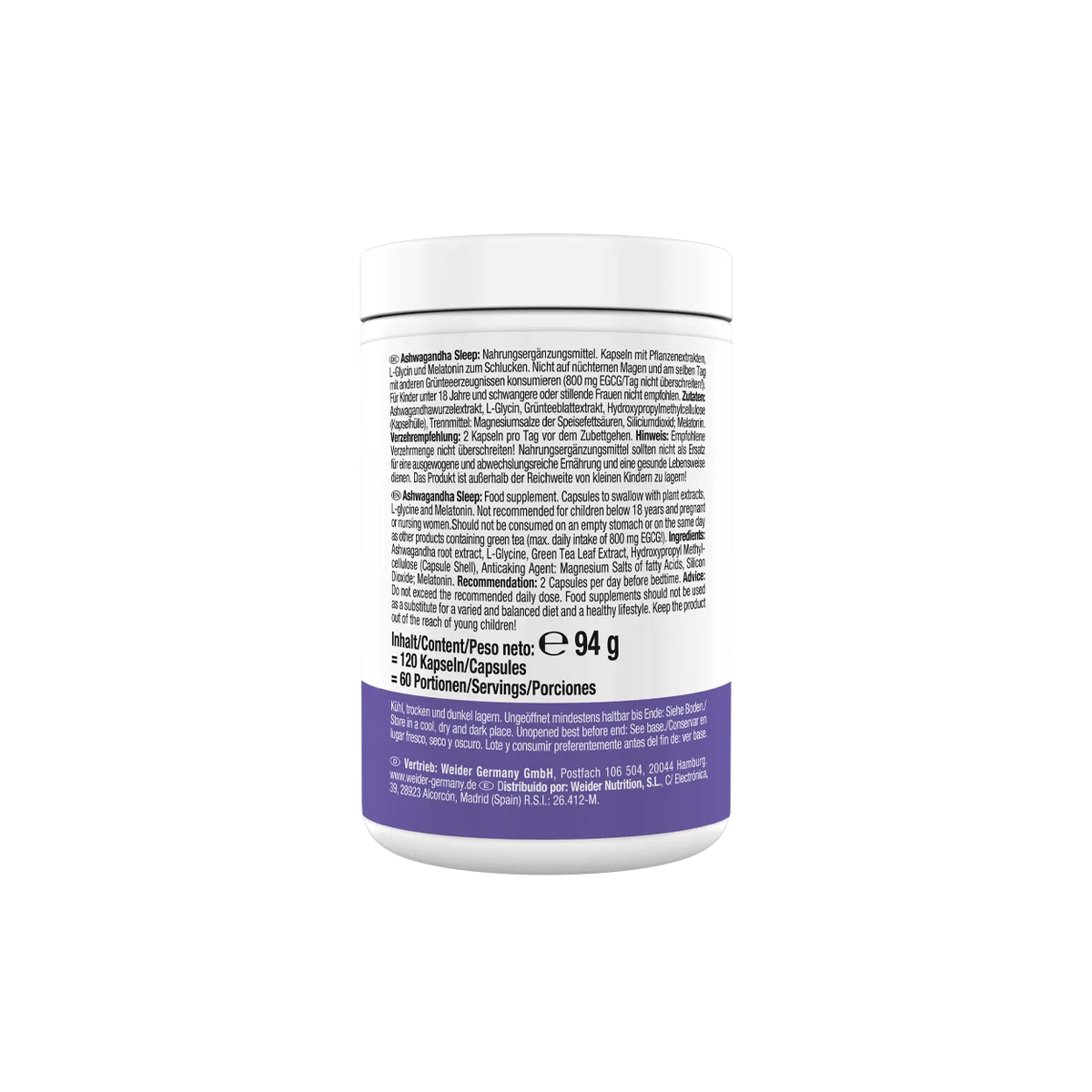 Weider Ashwagandha Sleep 120 capsule este un supliment premium conceput pentru a susține relaxarea, îmbunătățirea calității somnului și reducerea stresului acumulat în timpul zilei. Formula combină extract de ashwagandha – unul dintre cele mai eficiente adaptogene – cu ingrediente precum melatonina si glicina specifice pentru calm, restabilirea echilibrului nervos și pregătirea organismului pentru un somn profund și odihnitor.