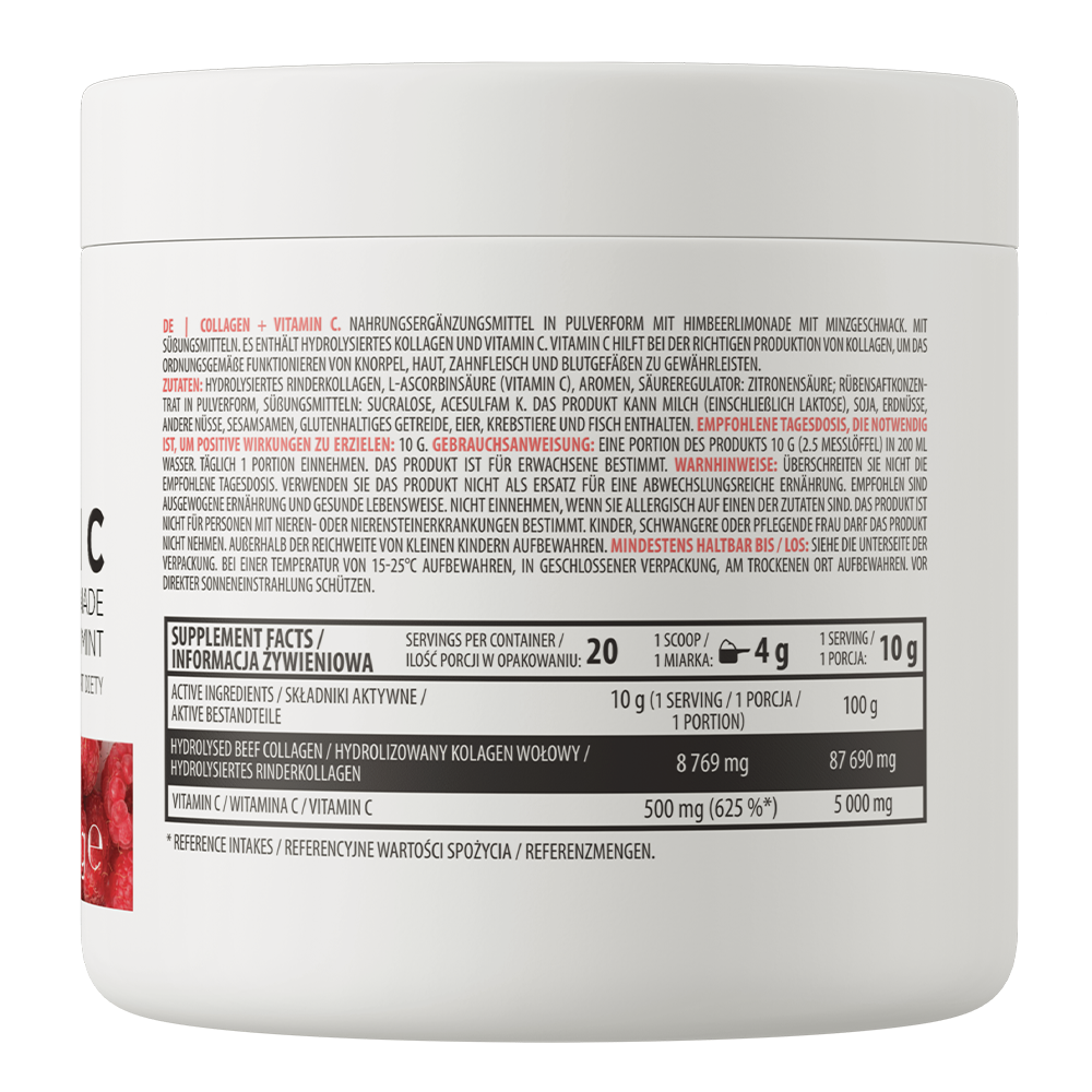 Collagen + Vitamin C de la OstroVit este un supliment eficient pentru susținerea articulațiilor, pielii și țesuturilor conjunctive. Formula combină colagen hidrolizat cu vitamina C, esențială pentru sinteza naturală a colagenului și pentru menținerea elasticității și rezistenței articulațiilor. Cu dizolvare ușoară și gust plăcut, este ideal pentru persoanele active, sportivi sau oricine dorește să sprijine sănătatea articulațiilor și a pielii.