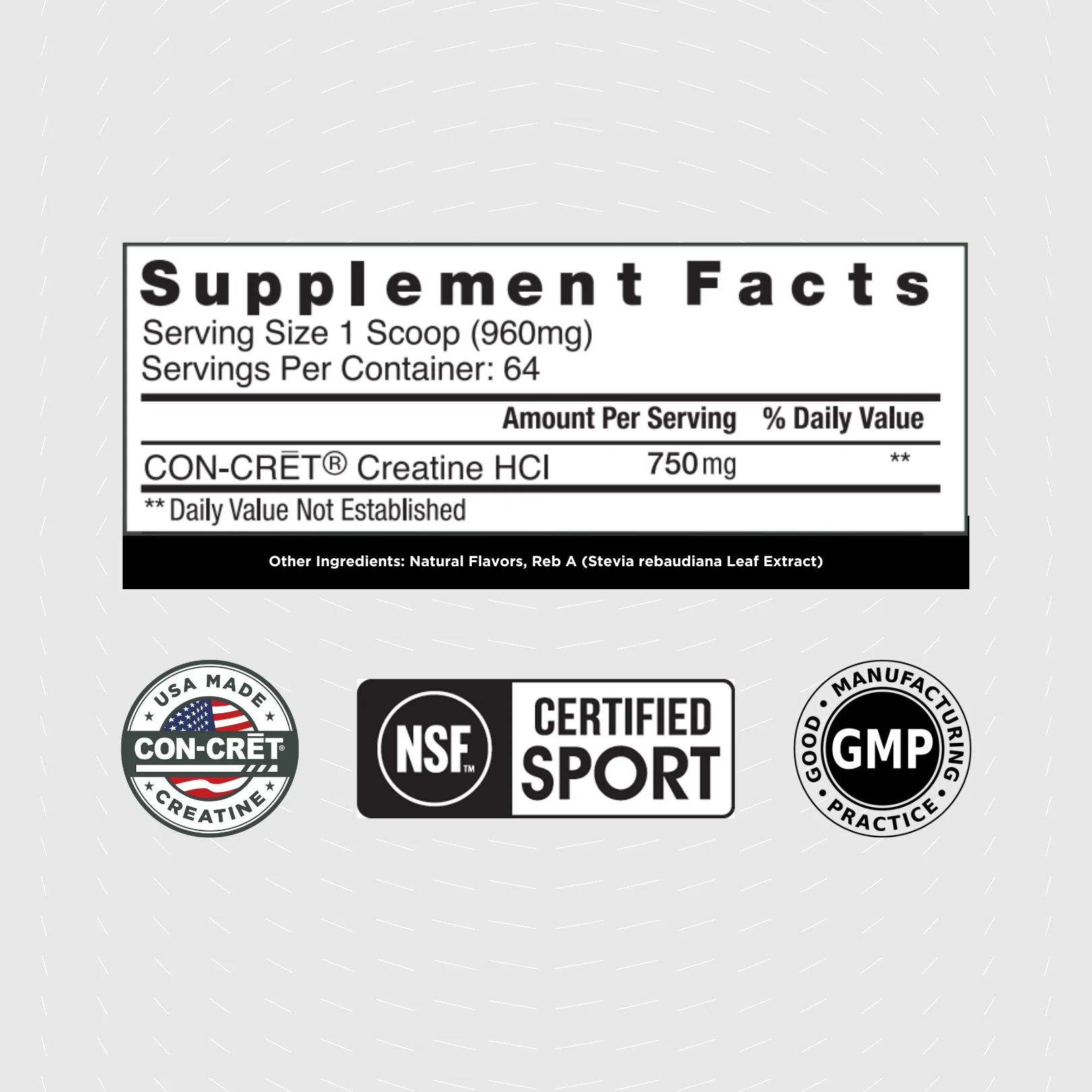 Con-Cret Creatine HCl este o formulă premium de creatină hidrocloridă, recunoscută pentru absorbția superioară, solubilitatea excelentă și toleranța optimă față de creatina monohidrat. Creatine HCl este ideală pentru sportivii care urmăresc creșterea forței, performanței, masei musculare și o recuperare mai rapidă, fără riscul de balonare, retenție de apă sau disconfort gastric. Con-Cret este unul dintre cele mai respectate branduri din domeniu, oferind o creatină extrem de pură și concentrată, cu dozaj precis și eficiență ridicată.