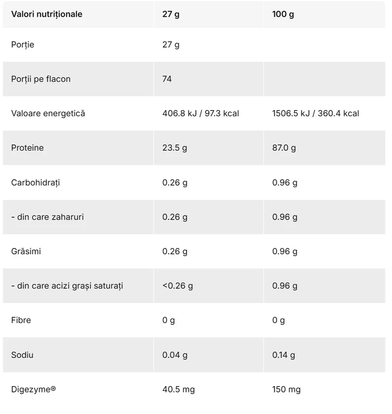 • Conținut ridicat de proteine de calitate, cu absorbție rapidă