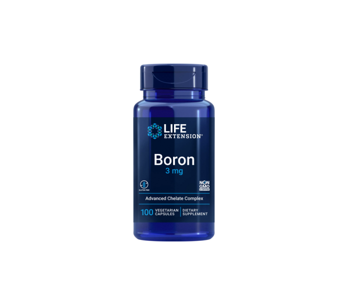 Life Extension Boron este un supliment alimentar ce furnizează 3 mg de bor per capsulă, un oligomineral esențial implicat în numeroase procese biologice importante. Borul contribuie la metabolismul mineralelor precum calciul și magneziul, susținând sănătatea sistemului osos, echilibrul hormonal și funcționarea optimă a organismului.