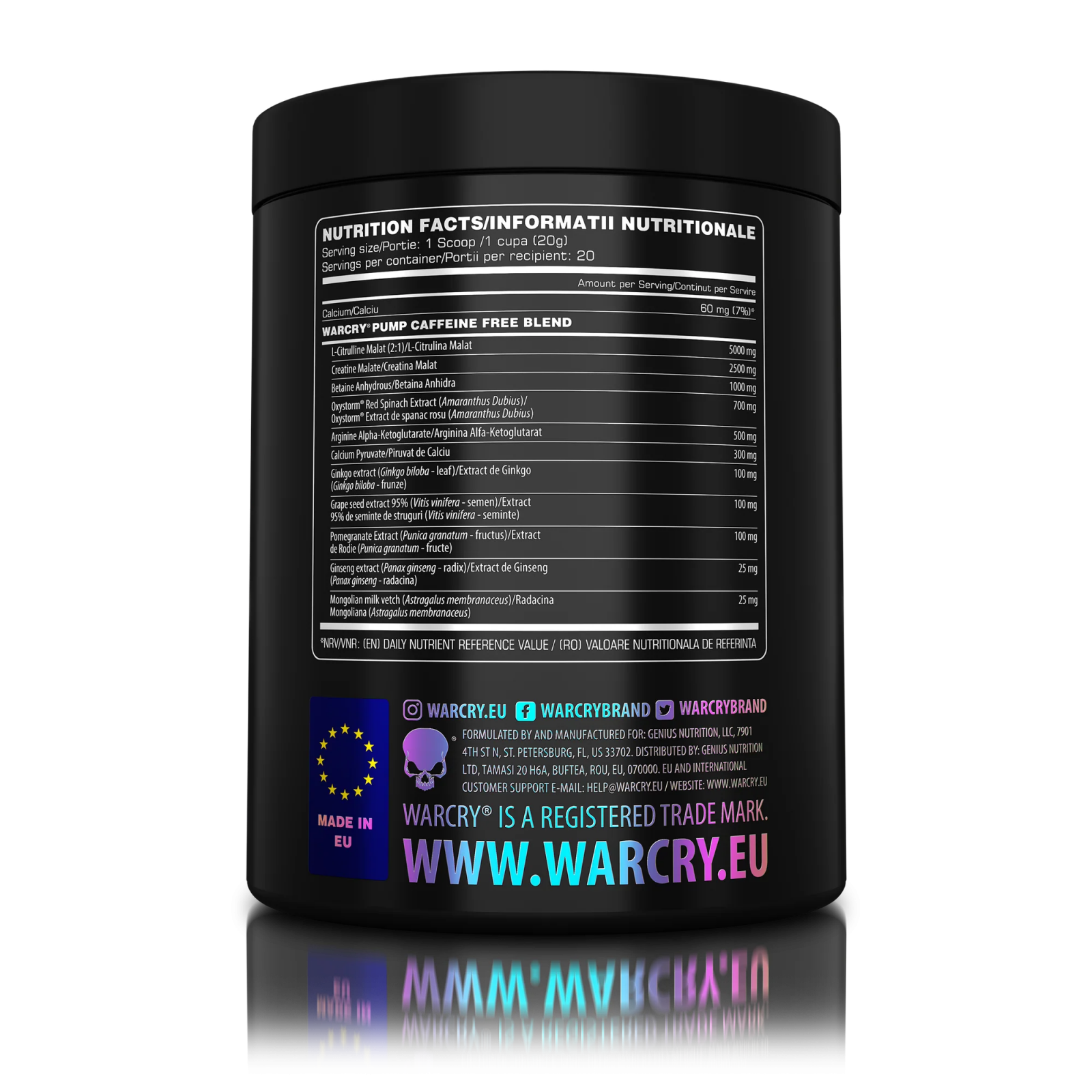 WARCRY PUMP, este un pre-workout conceput special pentru a sprijini performanta fara a influenta ciclurile de somn sau pentru persoanele sensibile la stimulenti. Acesta ofera beneficii precum vasodilatatie musculara,imbunatatirea rezistentei si sprijinirea recuperarii musculare, fiind o alegere excelenta pentru antrenamentele de seara sau pentru cei care doresc sa evite efectele stimulente ale cofeinei.