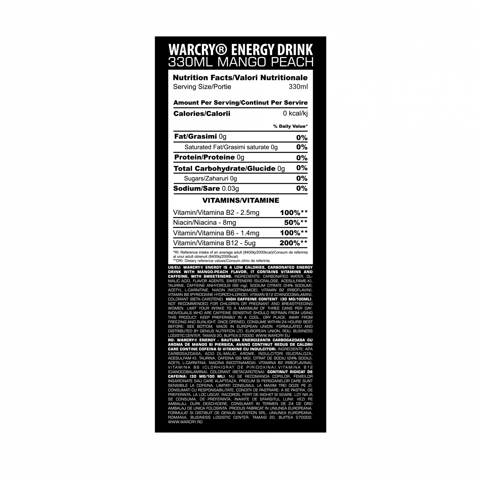 De asemenea, WARCRY ENERGY este bland cu stomacul. Datorita vitaminelor, bautura este metabolizata lent si constant; ai grija doar sa nu o consumi prea tarziu.