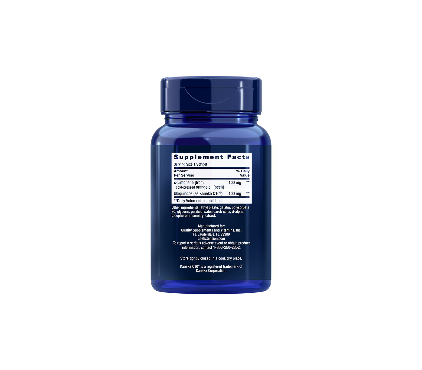 Life Extension CoQ10 Ubiquinone with D-Limonene este un supliment alimentar ce furnizează 100 mg de coenzima Q10 sub formă de ubiquinonă per capsulă, îmbunătățită cu D-limonenă, un compus natural extras din uleiuri de citrice. Coenzima Q10 este un nutrient esențial implicat în producerea de energie la nivel celular și are proprietăți antioxidante, contribuind la funcția optimă a inimii, susținerea nivelului de energie și protecția împotriva stresului oxidativ.