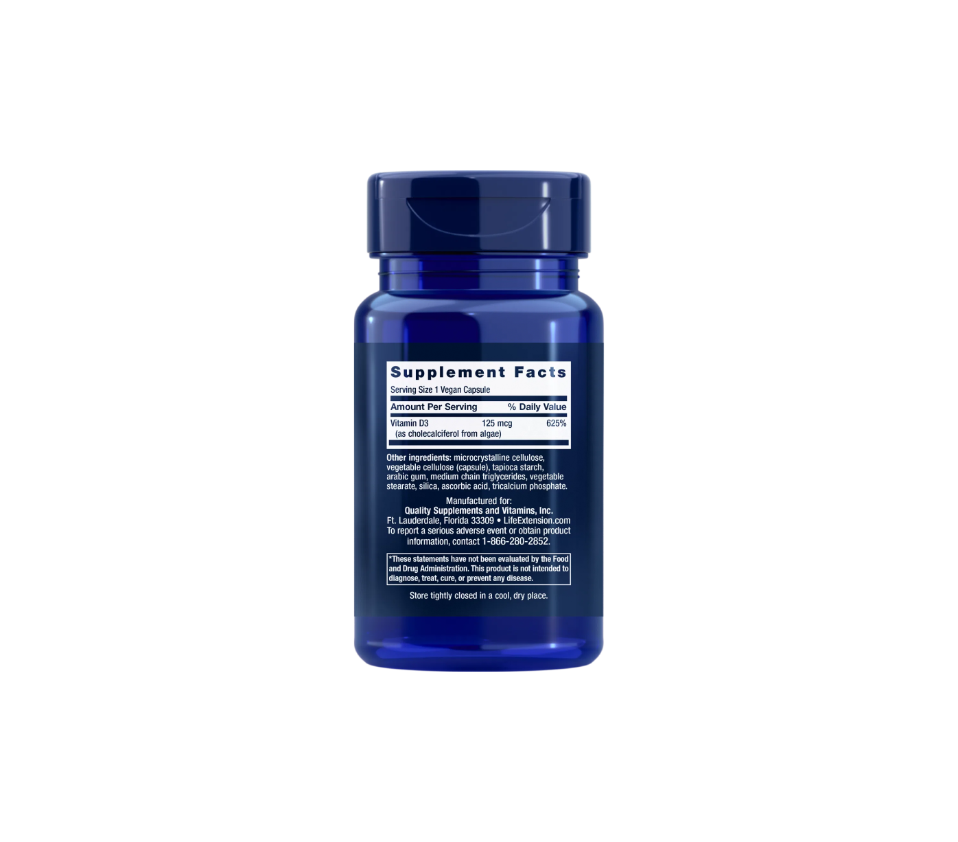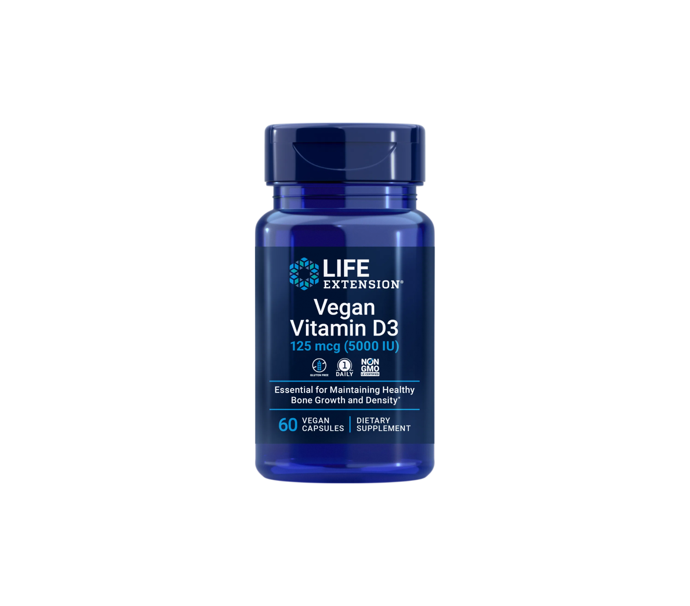 Vegan Vitamin D3 de la Life Extension este un supliment alimentar cu vitamina D3 (colecalciferol) de origine vegetală, obținută din alge, special formulat pentru persoanele care urmează o dietă vegetariană sau vegană. Vitamina D3 joacă un rol esențial în absorbția calciului și fosforului, contribuind la menținerea sănătății oaselor, a dinților și a sistemului imunitar.