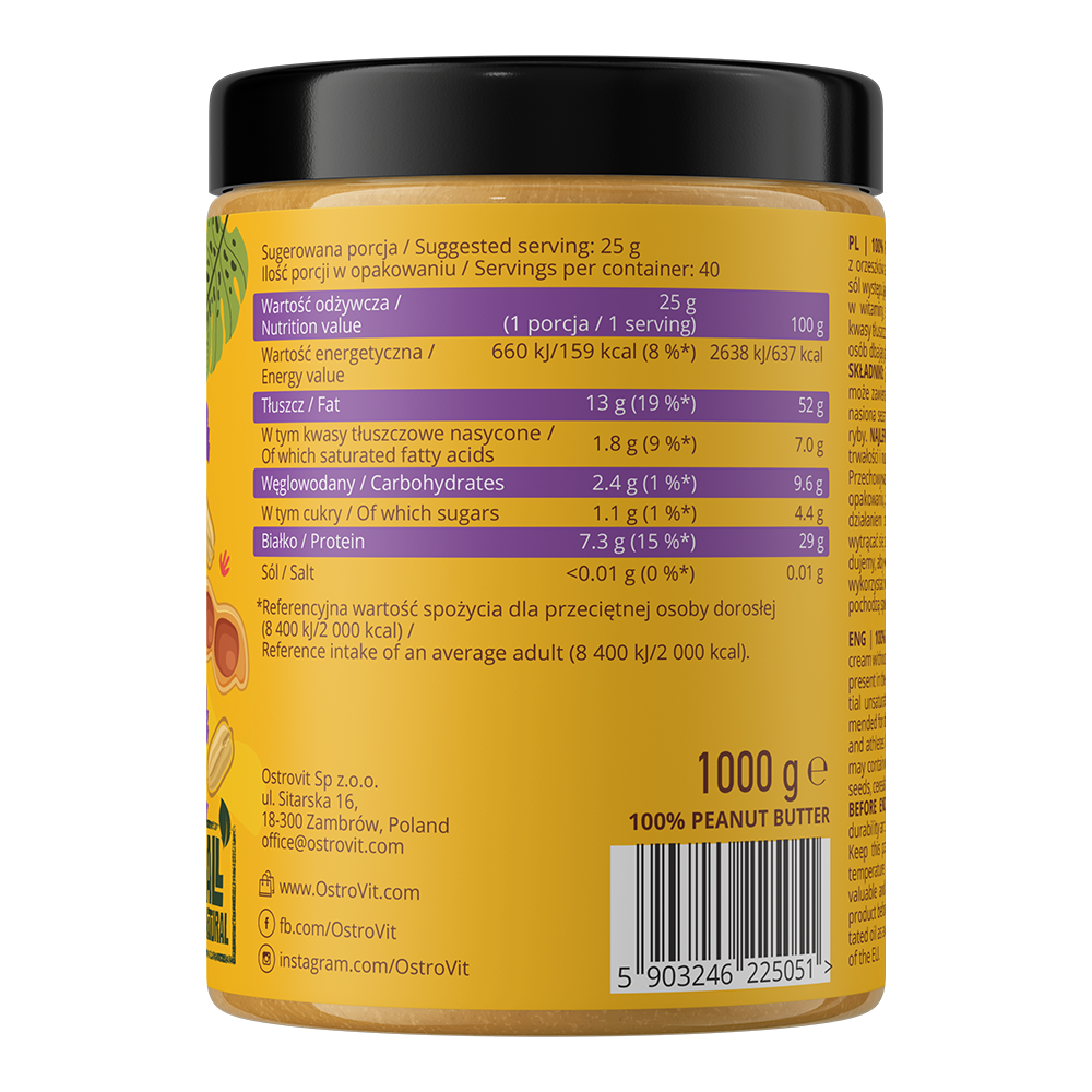 De ce să alegi Untul de Arahide OstroVit 100% Crunchy Peanut Butter de la suplimax.ro:**
