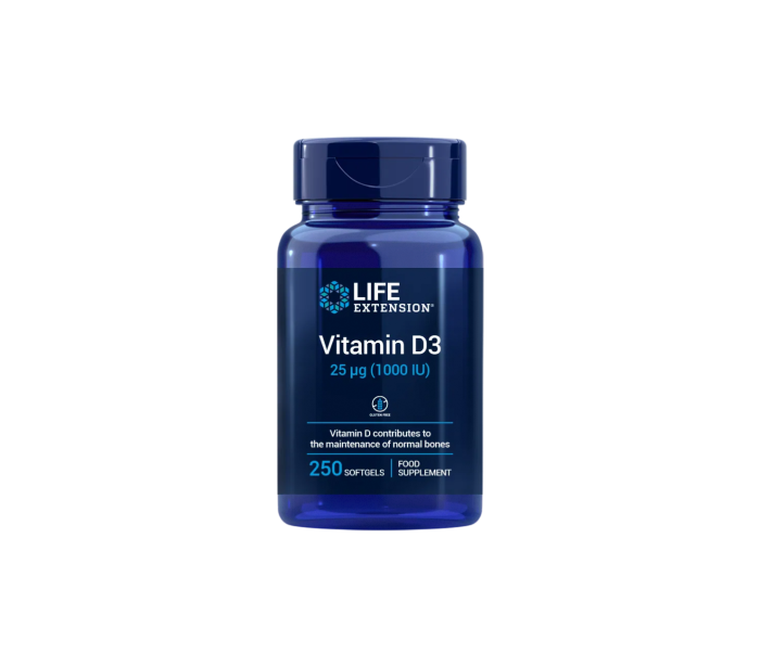 Vitamin D3 Life Extension este un supliment alimentar cu vitamina D3 (colecalciferol), formulat pentru a susține sănătatea sistemului osos, imunitar și muscular. Vitamina D3 este forma naturală și activă a vitaminei D, esențială pentru absorbția calciului și menținerea nivelurilor sănătoase în organism, mai ales în perioadele cu expunere redusă la soare sau în stiluri de viață cu mai puțin timp petrecut în aer liber.